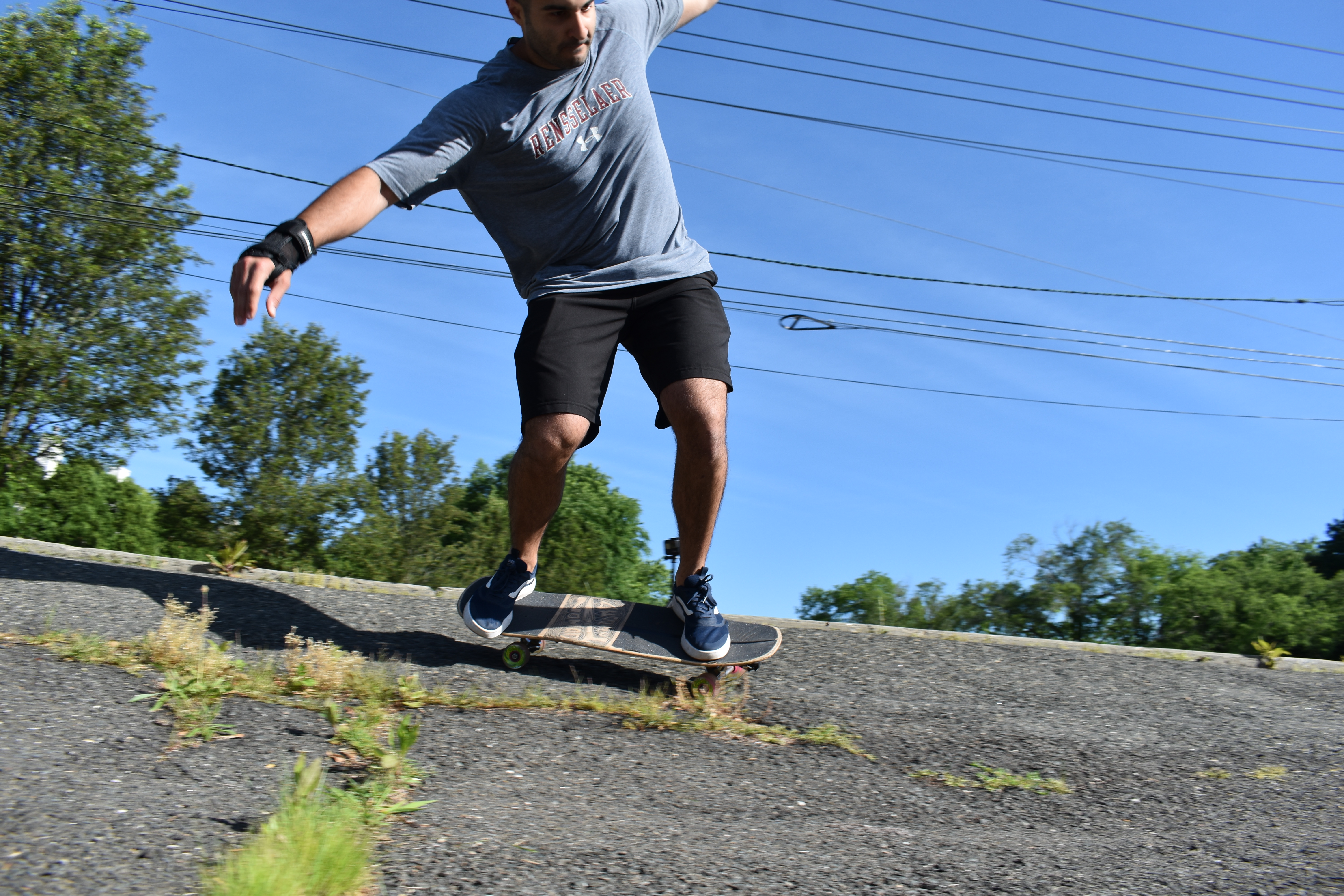 Fun one today. Earlier this week I was talking to my brother about where we could find “a wave” in town while we were together. I gave it some thought, and remembered that there was this interesting kind of driveway entrance setup at the town pool we both used to work at. When I told him his face lit up as he remembered what I was talking about. So the plan was to go try to ride this in the morning on Wednesday.