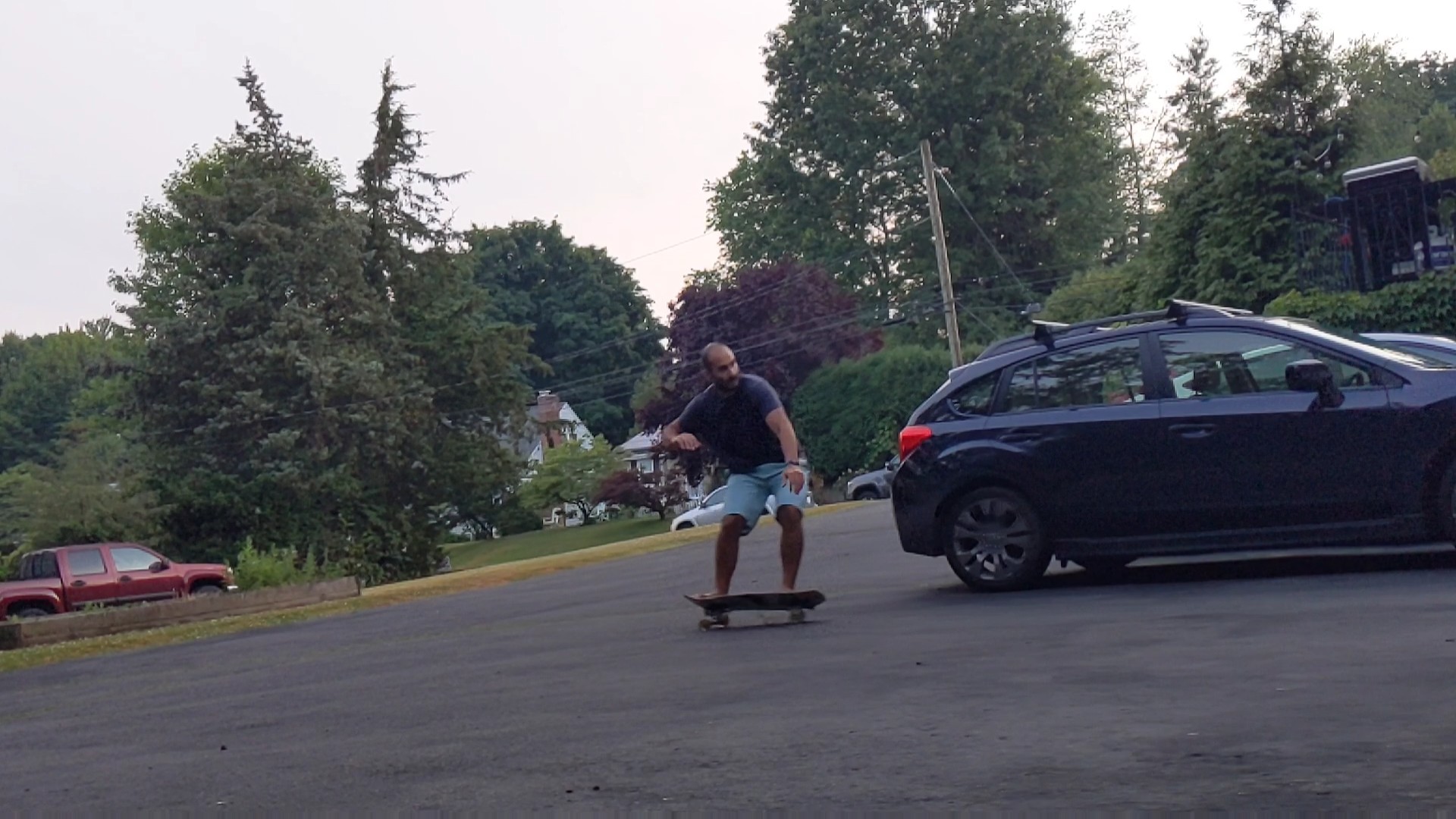 It rained all day. Luckily it stopped and the tarmac dried up toward the end of the day. I took the trash out after dinner then surfed around my driveway for a bit. Tried focusing on the “compression/extension” motion as if I was on a backside face.