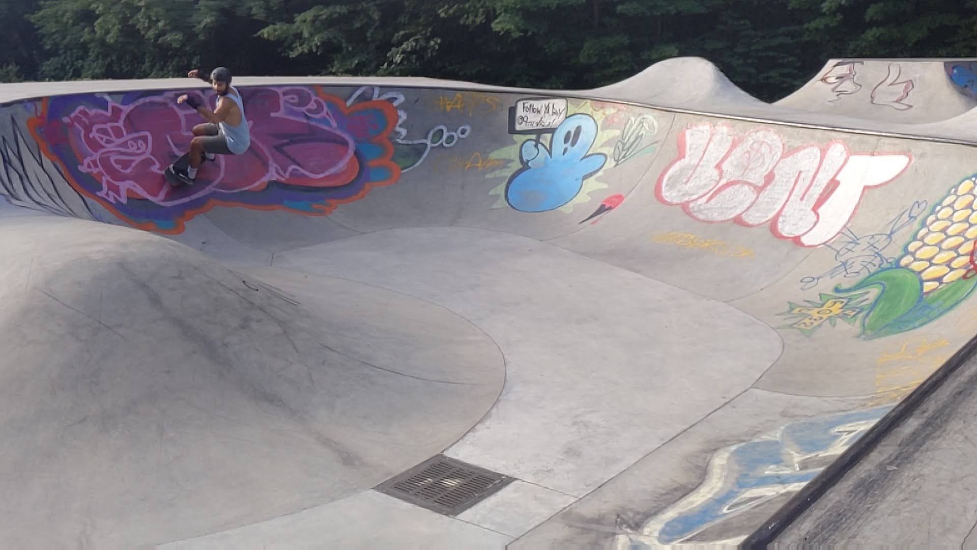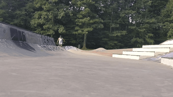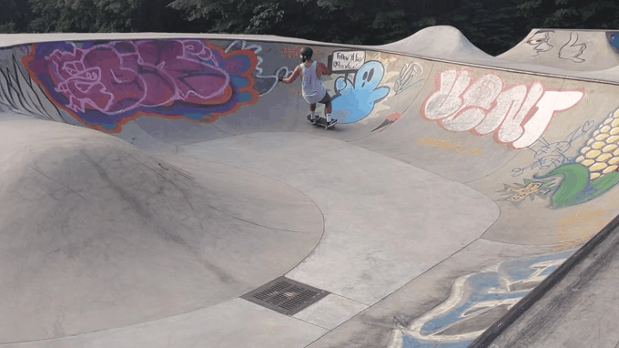Then it was time to drop into the bowl. Armed with a newly developed skill to carve a quarter pipe going frontside, I was ready to link up my line. I was excited about it too because I pumped hard through the first few backside pockets to give myself enough speed.