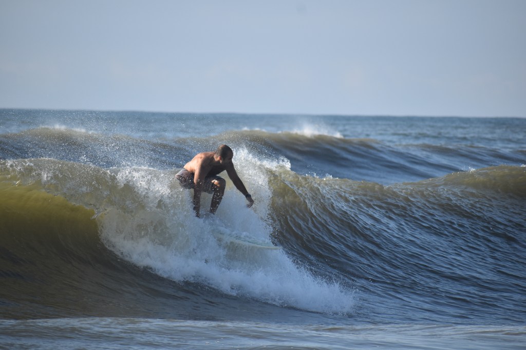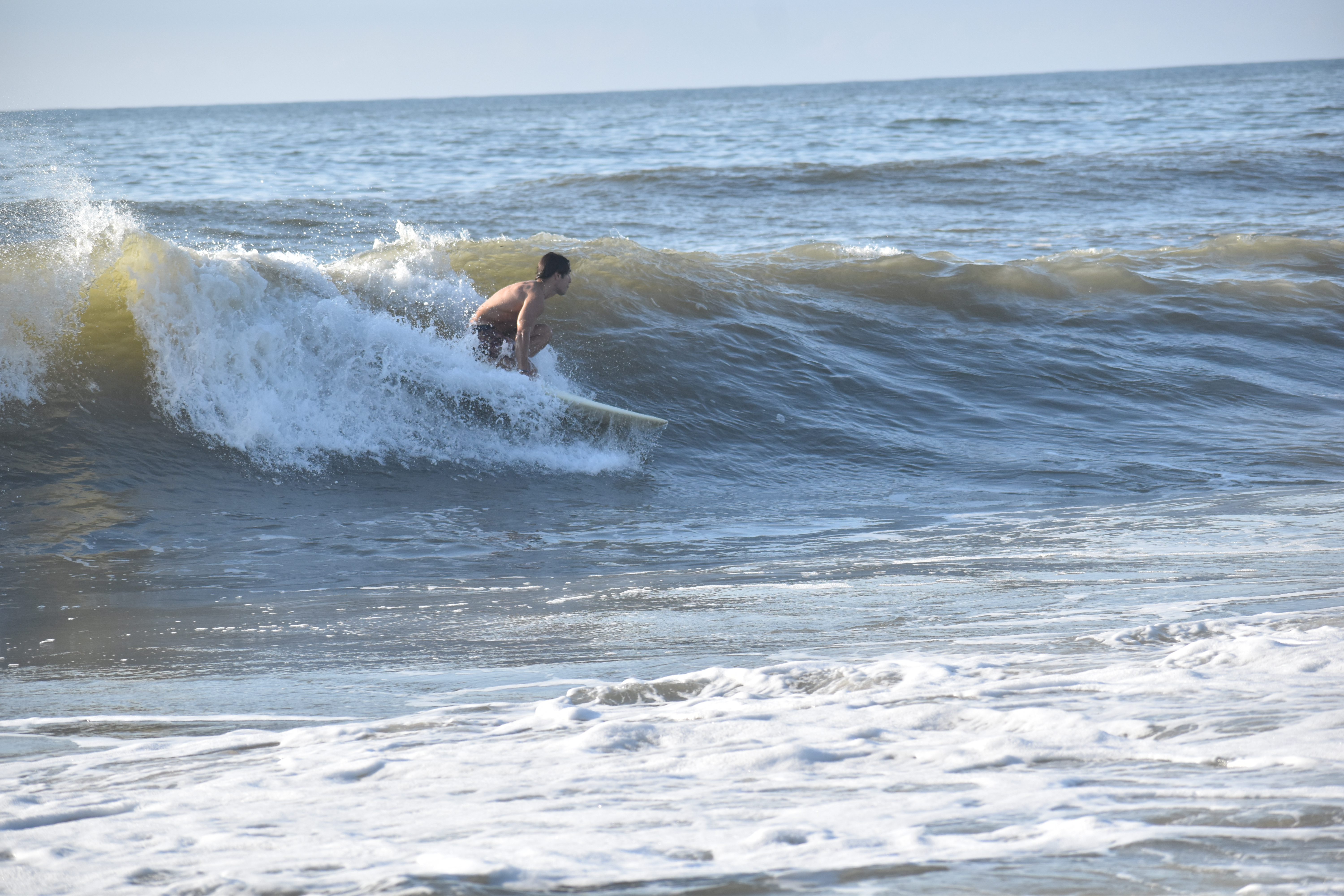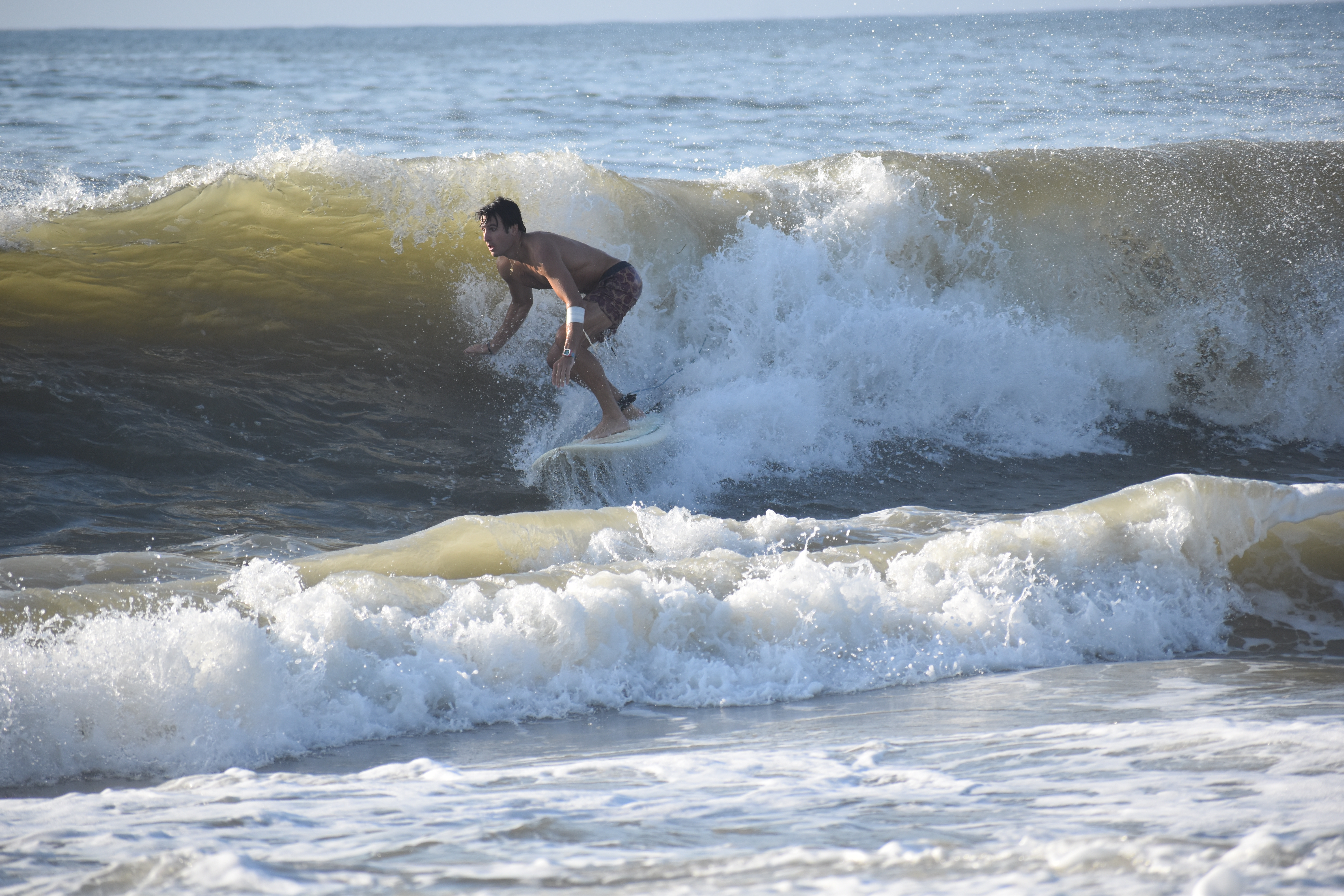 After a while he came in and we swapped. I wanted to try to catch a few more shore break waves now that the tide was almost all the way in. Again I took a couple drops and that was about it. On one though, I felt great. Popped up. Set the rail, grabbed the other and dug into a backside drop.