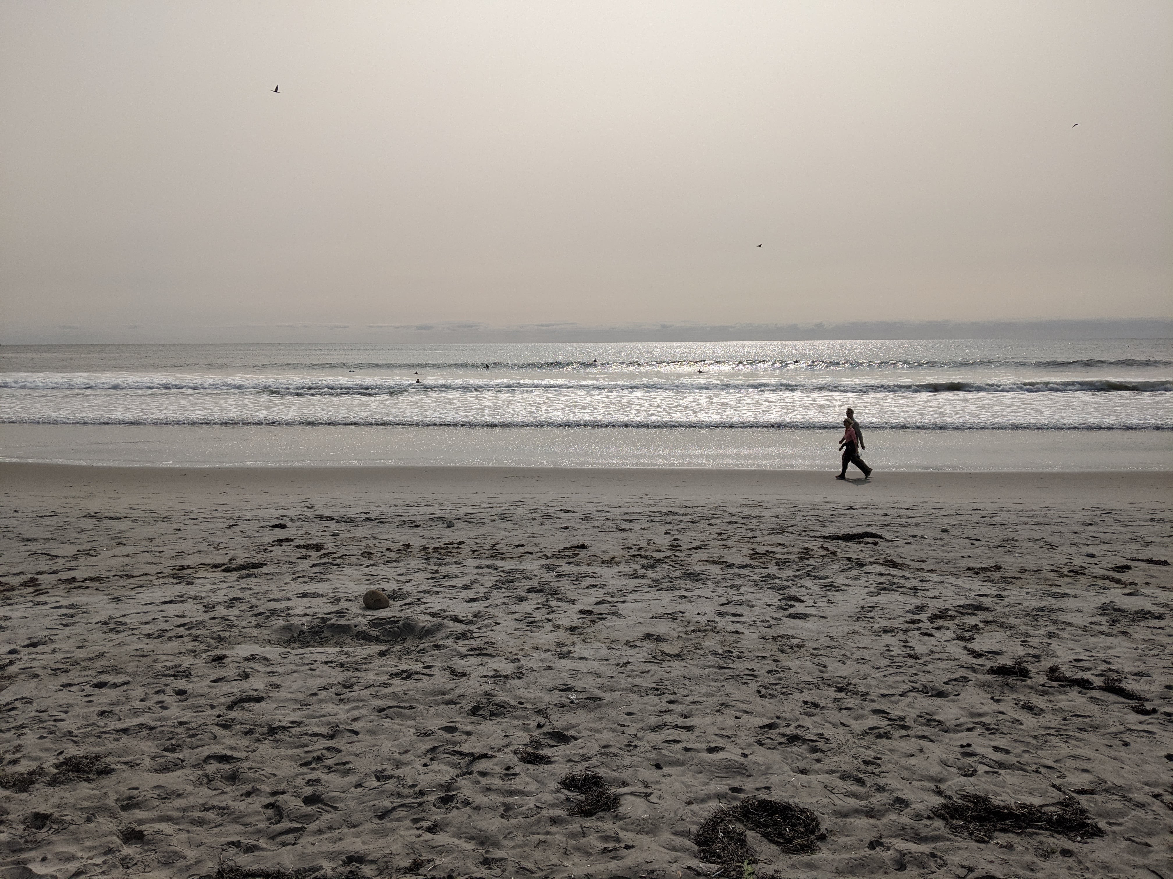 Narragansett Town beach. I got there just as the sun was rising. Although it wasn’t as vivid as I thought it would be. The weather forecast for the day said it would be sunny and clear all day, however the sun seemed to be barely shining through some haze. I would find out later that this was due to wildfire smoke blown from 3,000 miles away. Wild.