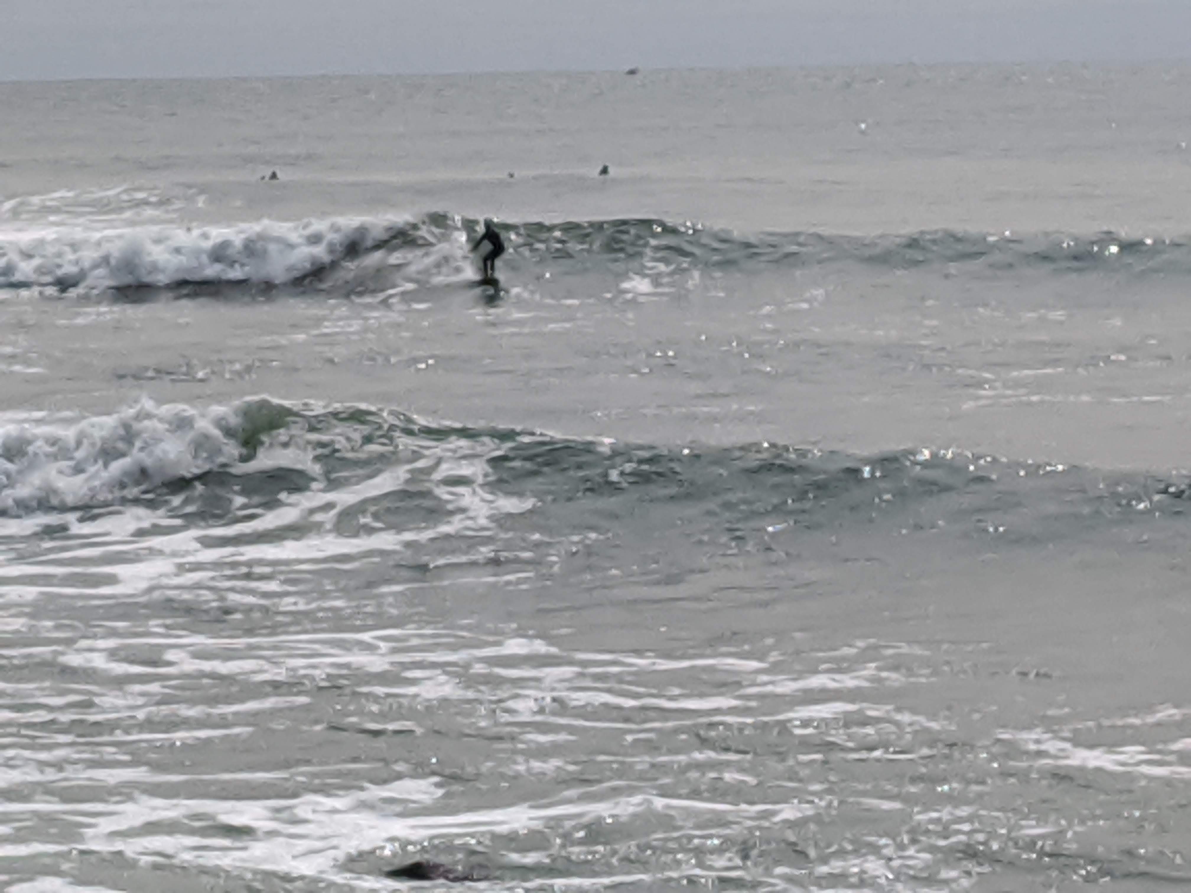 After that ride, I went about a half hour without one. I started to feel anxious about how the heck to get out of the water. I had observed surfers entering, but I didn’t see anyone coming back to shore. I worried a bit more than I’m proud to admit about this.