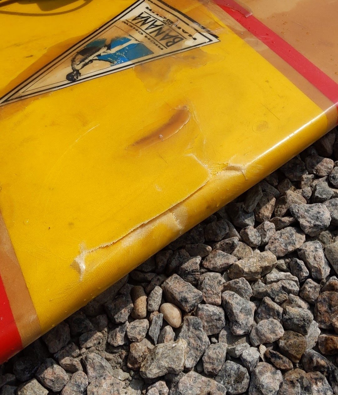 I exited with as much grace as I entered. When I picked up my board I saw the carnage. My board was FUBAR. Huge crack in the rail with a big old de-lamination.