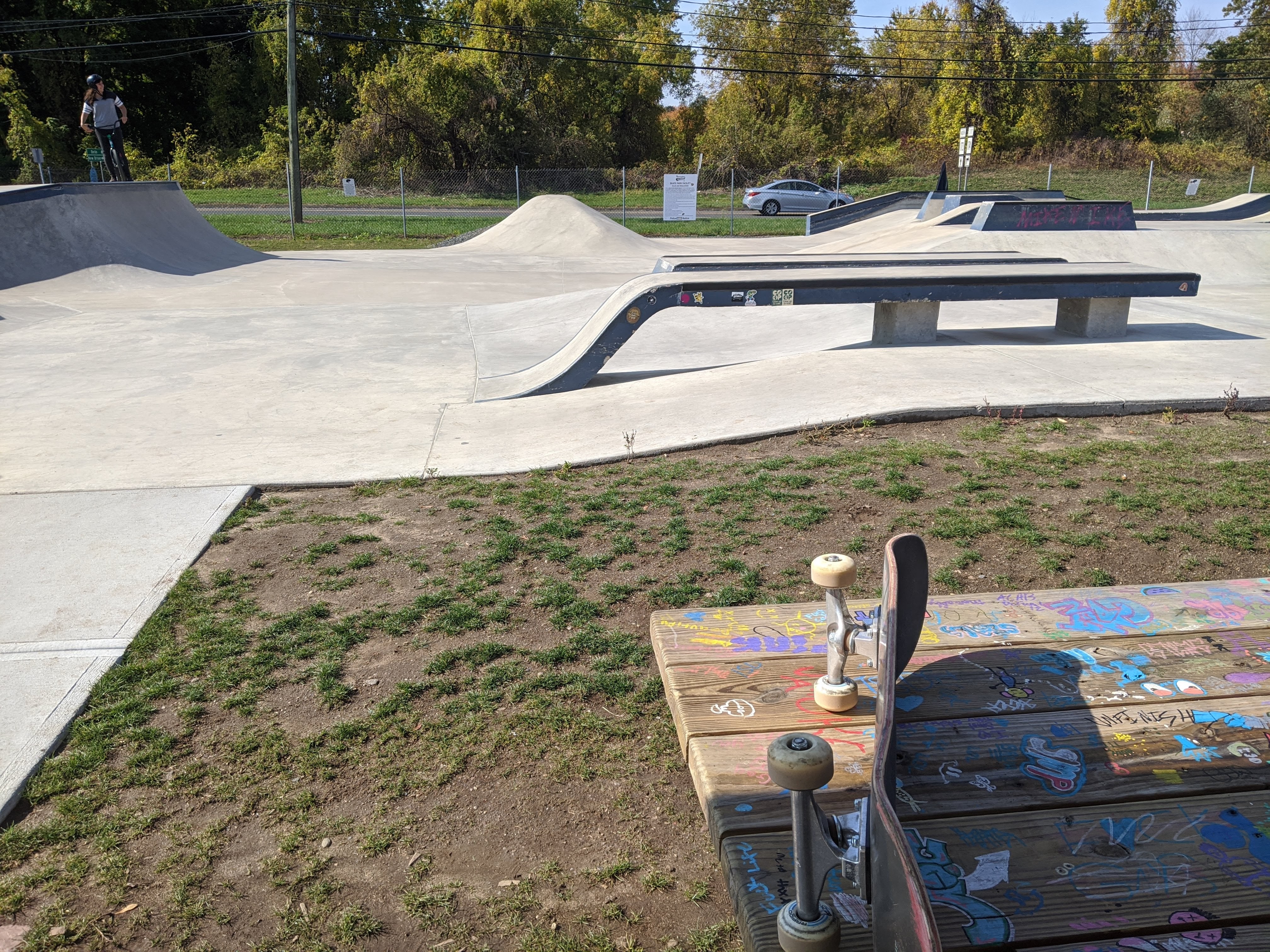 After a bit more practice I got a couple on the regular quarter-pipe coping as well. Some BMXers showed up at this point, and I moved over to the other corner of the park to practice more backside kickturns, slash grinds, and pumping to fakie in the “mini-ramp” section.