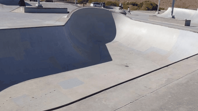 The bowl has an awesome, over vert, spherical pocket that I was working on carving. Man, it’s crazy to think that dudes are able to get up to that coping. I was having fun getting maybe 3/4 of the way up the wall and that was enough for me today.